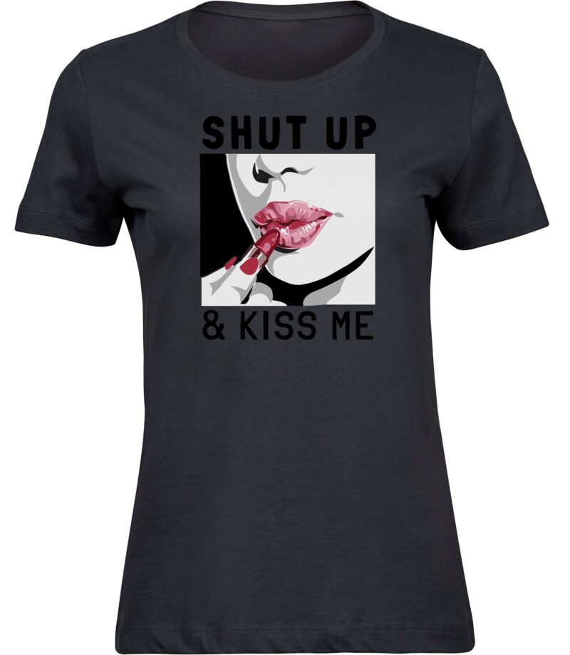 Marškinėliai moterims KISS ME, pilki