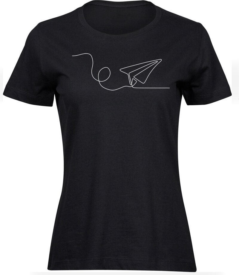 Marškinėliai moterims LĖKTUVĖLIS LINIJOMIS, juodi