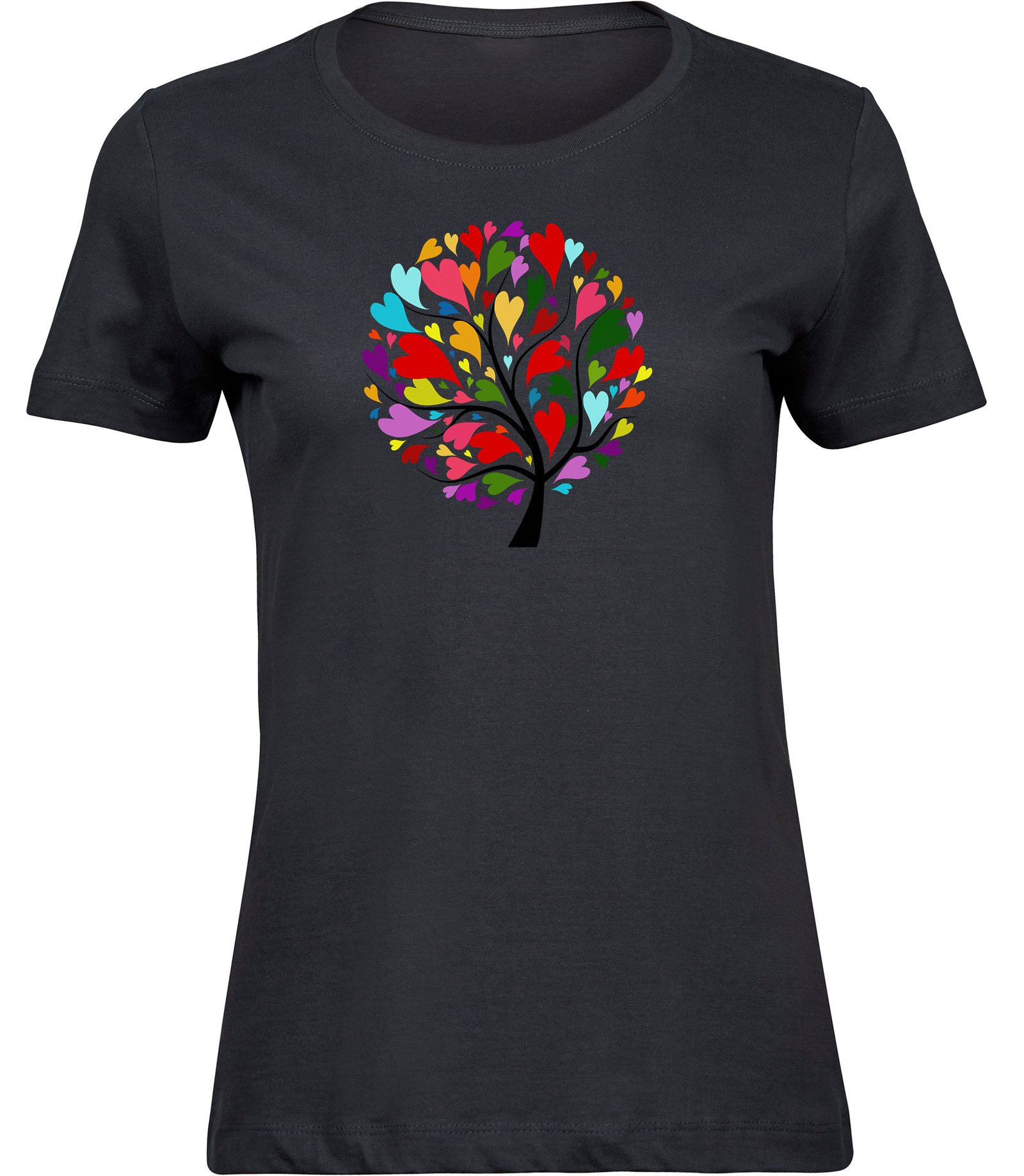 Marškinėliai moterims ŠIRDŽIŲ MEDIS, pilki