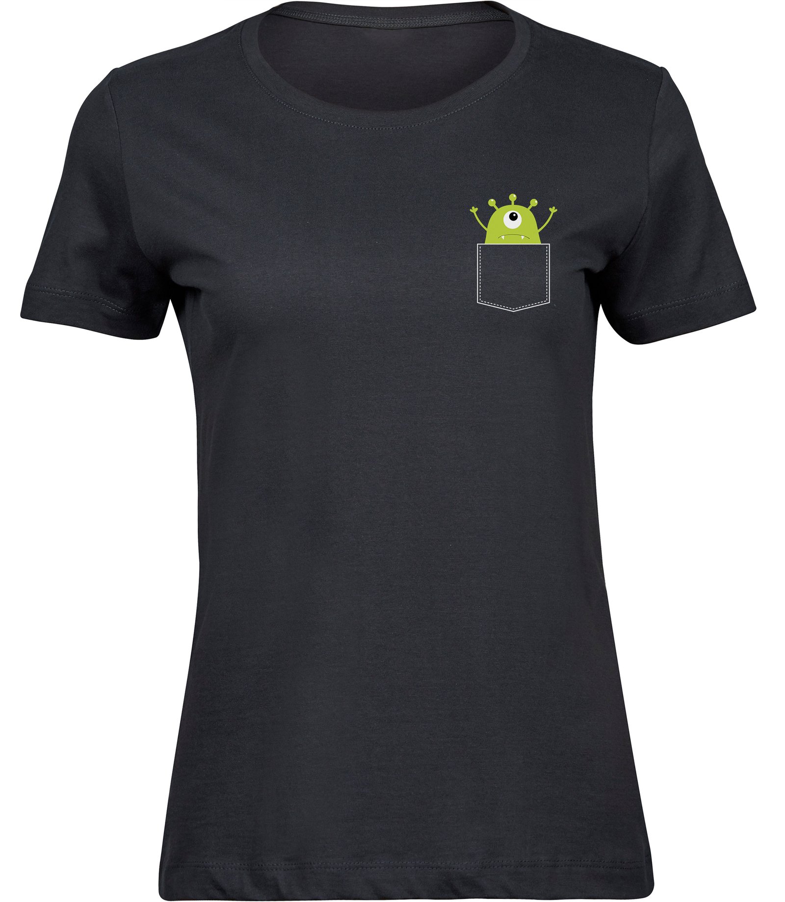 Marškinėliai moterims MONSTRIUKAS KIŠENĖJE, pilki