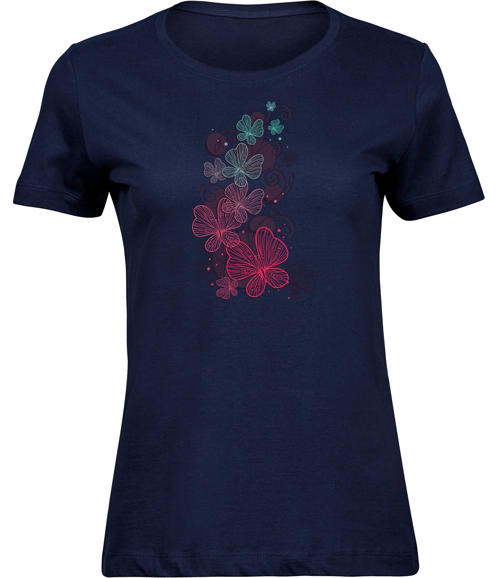 Marškinėliai moterims NEONINIAI DRUGELIAI, Navy mėlyni