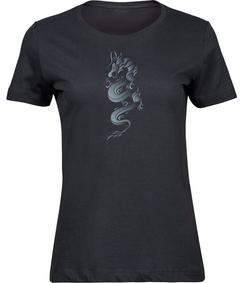 Marškinėliai moterims RŪKSTANTIS DRAKONAS, pilki