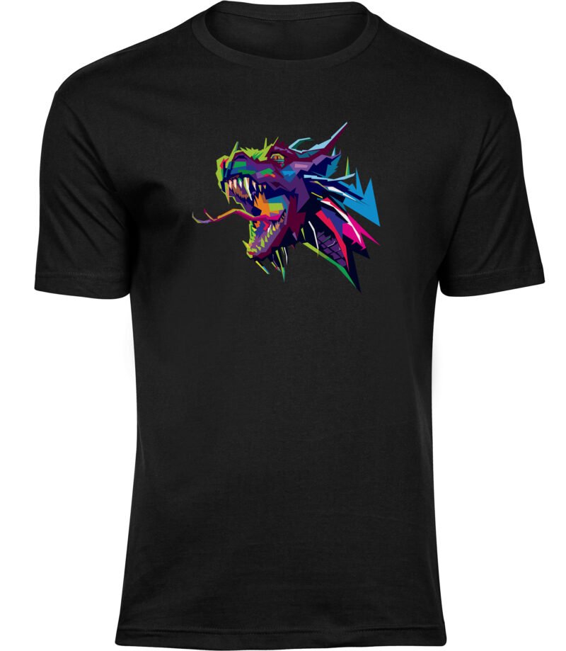Marškinėliai vyrams DRAKONAS SPALVOTAI, juodi
